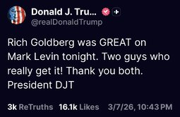 >>24356992 @realDonaldTrump Rich Goldberg was GREAT on Mark Levin tonight. Two guys who really get it! Thank you both