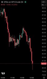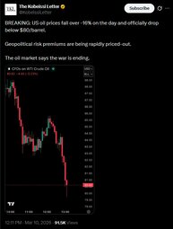BREAKING: US oil prices fall over -16% on the day and officially drop below $80/barrel.