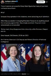 >>24365073 @RealSLokhova These 2 women are powerful Deep State figures, Gina Haspel, Avril Haines