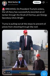 🚨 BREAKING: The US Navy has just successfully escorted an OIL TANKER through the Strait of Hormuz, Energy Sec. Chris Wright announces