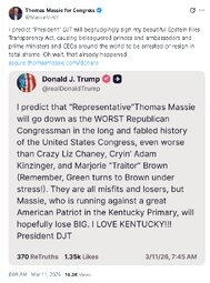 >>24366592 @realDonaldTrump The incredible people of Kentucky’s 4th Congressional District, who want desperately to get rid of Thomas Massie, the Worst “Republican” Congressman we have had in many years, gave us a mandate to, MAKE AMERICA GREAT AGAIN! Captain Ed Gallrein, a true Patriot