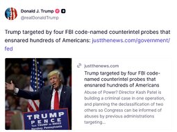 >>24366755, >>24366768 @realDonaldTrump Trump targeted by four FBI code-named counterintel probes that ensnared hundreds of Americans