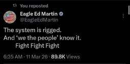 >>24368722 The system is rigged. And ‘we the people’ know it. Fight Fight Fight