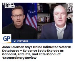 >>24376754 John Solomon Says China Infiltrated Voter ID Databases — Evidence Set to Explode as Gabbard, Ratcliffe, and Patel Conduct ‘Extraordinary Review’