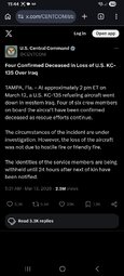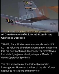 >>24375772 CENTCOM Announces Tragic Loss of U.S. Refueling Aircraft – Four Killed
