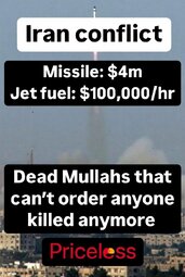 >>24375863 “We are totally destroying the terrorist regime of Iran, militarily, economically, and otherwise, yet, if you read the Failing New York Times, you would incorrectly think that we are not winning. Iran’s Navy is gone, their Air Force is no longer…” - President Donald J. Trump