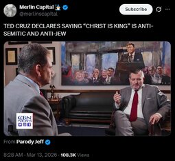 >>24376727 TED CRUZ DECLARES SAYING “CHRIST IS KING” IS ANTI-SEMITIC AND ANTI-JEW