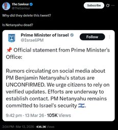 He appeared in a live press conference March 12 and issued statements as recently as yesterday. The official tweet addressed unverified speculation (hence why it was deleted), but verified updates confirm he's alive and active.