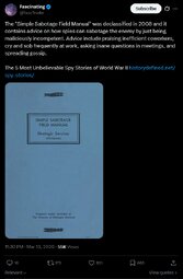 >>24382512 The "Simple Sabotage Field Manual" was declassified in 2008 - The 5 Most Unbelievable Spy Stories of World War II