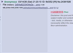 Disclaimer: this post and the subject matter and contents thereof - text, media, or otherwise - do not necessarily reflect the views of the 8kun administration.