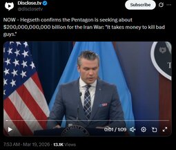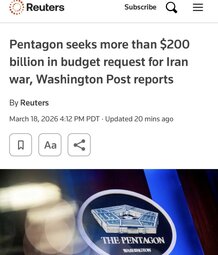 >>24399610 Pentagon requests over $200 billion for Iran war - Washington Post