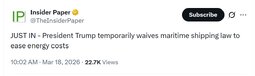 >>24400531, >>24400594 POTUS waived the Jones Act for 60 days, which restricts domestic shipping to US ships and crews.