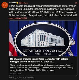 >>24403067 Super Micro Co-Founder Arrested In Alleged $2.5 Billion Nvidia Chip Smuggling Scheme