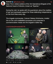Sean Penn visited soldiers of the 3rd Operational Brigade of the National Guard of Ukraine, known as “Spartan.”