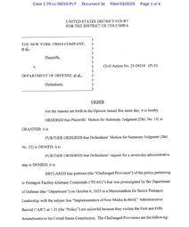 >>24406147 A federal judge ruled in favor of the New York Times, finding that the Pentagon's press policy violated its First and Fifth Amendment rights