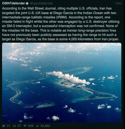 >>24407485 Iran targeted but did not hit Diego Garcia base with missiles
