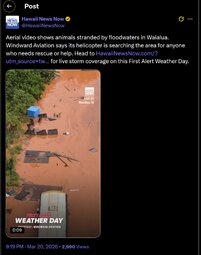 >>24407107 Aerial video shows animals stranded by floodwaters in Waialua.