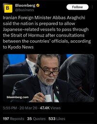 >>24407177 Iran signals Japanese ships may pass through Strait of Hormuz
