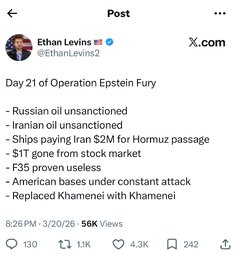 >>24406532 WATCH President Trump Full Gaggle with Press Before Departing the White House, Mar. 20, 2026
