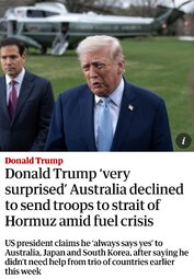 >>24406494, >>24406508 @realDonaldTrump The Hormuz Strait will have to be guarded and policed, as necessary, by other Nations who use it — The United States does not!