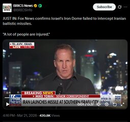 JUST IN: Fox News confirms Israel's Iron Dome failed to intercept Iranian ballistic missiles.
