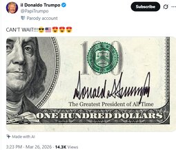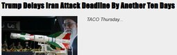 >>24430951, >>24431039, >>24431217 @realDonaldTrump As per Iranian Government request, please let this statement serve to represent that I am pausing the period of Energy Plant destruction by 10 Days to Monday, April 6, 2026, at 8 P.M.