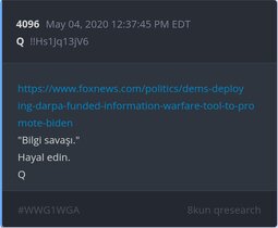 Qresear.ch/q-posts, Qanon.pub, Qalerts.pub, OperationQ.pub, Qposts.online, 8kun.top/qresearch, Qalerts.app, Qalerts.net, douknowq.com/134295/Q-Anon-Pub.htm8ku