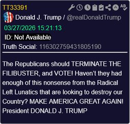 >>24434832 @realDonaldTrump The Republicans should TERMINATE THE FILIBUSTER, and VOTE!