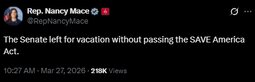 >>24434288, >>24434846 The Senate left for vacation without passing the SAVE America Act.