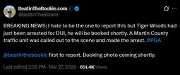 "I feel so badly…really close friend of mine, amazing person, amazing man. He's got some difficulty. Pray for Tiger Woods!"