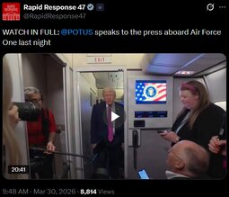 >>24442909, >>24442963, >>24442967, >>24442924 President Trump Gaggles with Press on Air Force One En Route Joint Base Andrews, Mar. 29, 2026