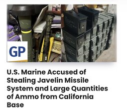>>24443545 A Marine corporal is accused of stealing Javelin missile systems and ammunition from Camp Pendleton to resell in Arizona.