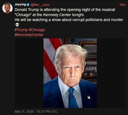 Donald Trump is attending the opening night of the musical "Chicago" at the Kennedy Center tonight.