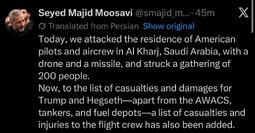 >>24448699, >>24448726 IRGC threatened to target American tech companies claiming they are involved in strikes against Iran