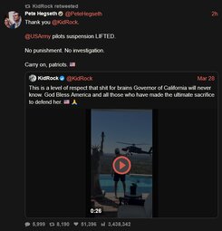 >>24449041, >>24449045, >>24449053 @KidRock This is a level of respect that shit for brains Governor of California will never know.