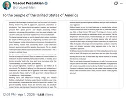 >>24451553 Trump says "Iran’s New Regime President" has asked for a ceasefire and that the U.S. will only consider it when Hormuz Strait is opened, "Until then, we are blasting Iran into oblivion or, as they say, back to the Stone Ages!!!."/ Wut bout "POSTPONED" do they not understand?