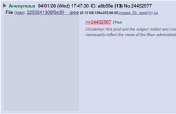 Disclaimer: this post and the subject matter and contents thereof - text, media, or otherwise - do not necessarily reflect the views of the 8kun administration.