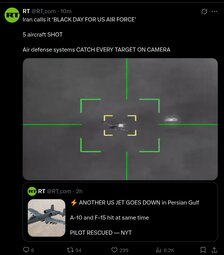 >>24460733, >>24460783 BREAKING: A SECOND US Air Force combat plane, an A-10 Warthog, has GONE DOWN in the Persian Gulf region today