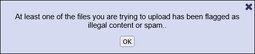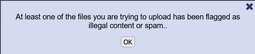 At least one of the files you are trying to upload has been flagged as illegal content or spam..