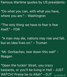 >>24469667, >>24469674, >>24469695, >>24469704, >>24469719 Anons discuss Trump's recent quotes on Iran war