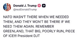 >>24479996 PDJT: NATO WASN’T THERE WHEN WE NEEDED THEM, AND THEY WON’T BE THERE IF WE NEED THEM AGAIN. REMEMBER GREENLAND, THAT BIG, POORLY RUN, PIECE OF ICE!!! President DJT
