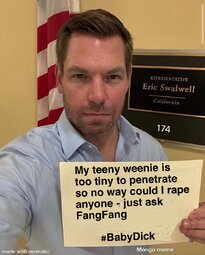 >>24486634, >>24486760, >>24486985 Swalwell (D-CA), who is currently running for Governor of California, has been accused of sexual assault