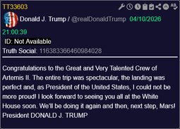 >>24486709, >>24487060, >>24487062, >>24487074, >>24487076, >>24487080, >>24487092, >>24487107 WATCH LIVE: The Artemis II Splashes Down to Earth in the Pacific - 04/10/26