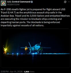 >>24499291 @CENTCOM More than 10,000 U.S. Sailors, Marines, and Airmen along with over a dozen warships and dozens of aircraft are executing the mission to blockade ships entering and departing Iranian ports.