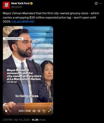 >>24499375 NYC Mayor Mayor Mamdani on city owned grocery store “NYC, it is time for a grand experiment once again”