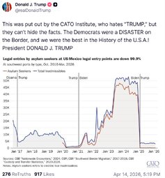 >>24500773 @realDonaldTrump This was put out by the CATO Institute, who hates “TRUMP,” but they can’t hide the facts. The Democrats were a DISASTER on the Border, and we were the best in the History of the U.S.A.!