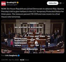 NOW: Six House Republicans joined Democrats to advance Rep. Ayanna Pressley’s bill to give Haitians in the U.S. Temporary Protected Status for three years. The measure passed 219–209 and now moves to a final House vote tomorrow.