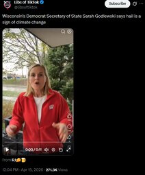 >>24504124 Wisconsin’s Democrat Secretary of State Sarah Godlewski says hail is a sign of climate change