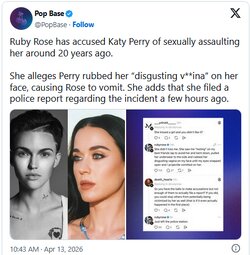 She alleges Perry rubbed her “disgusting v**ina” on her face, causing Rose to vomit. She adds that she filed a police report regarding the incident a few hours ago.