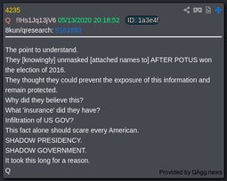 * Q Posts Archive, Searchable, interactive with user-explanations: qanon.pub qanon.app